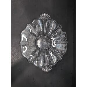 Fostoria Etched Chintz Cake Platter with Handles, Uranium Glassware, Home Decor