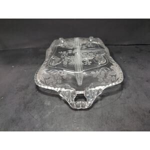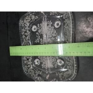 Fostoria Etched Glass Divided Relish Dish, Basket Floral Design, 3-Part Serving
