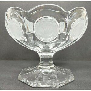 Fostoria Frosted Glass Clear Eagle 1886 Coin Dot Pedestal Compote Candy Bowl VTG