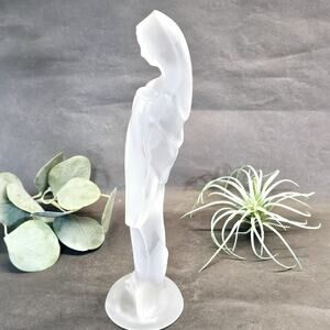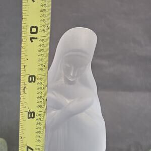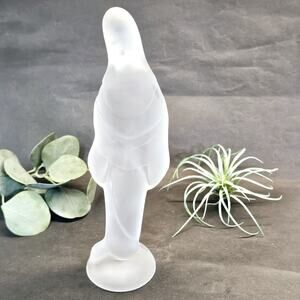 Frosted 10” Lady Madonna pressed satin frosted glass figurine in great condition with no chips found.