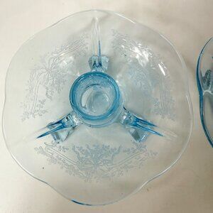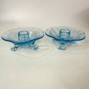 Fostoria Glass Versailles Azure Blue 3-Toed Candle Holders Set Of 2