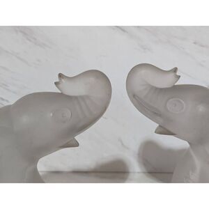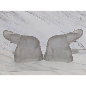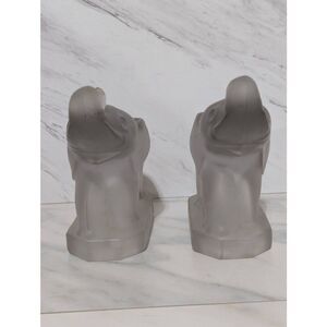Fostoria Glass Vintage Rare Pair Silver Mist Elephant Heavy Weight Bookends