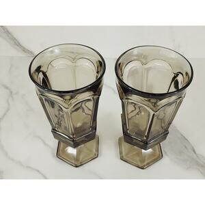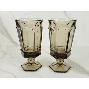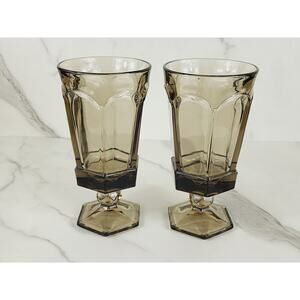 Fostoria Goblet Virginia Smokey Brown 10oz Ice Tea Water Glass Tall 7" Footed x2