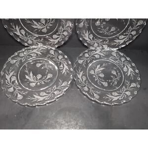 Fostoria Heather Etched Salad Plates Set, Clear 7" Plates, 5-Piece Set, Floral
