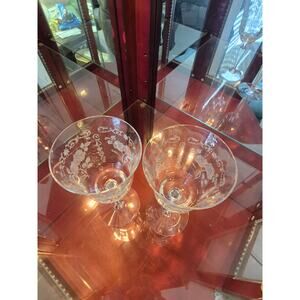 Fostoria Midnight Rose Water Glasses Etched Vintage Fine Quality 1933 Set of 2