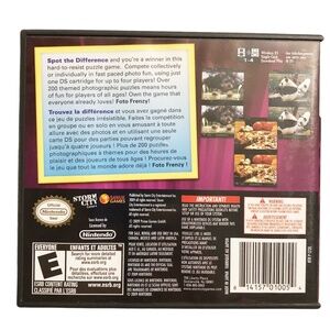 Designed to be a digitized version of classic "spot the difference" puzzles, Foto Frenzy challenges gamers to look at two seemingly identical pictures and pick out minute inconsistencies between the two. Players look at the top screen as a reference photo while they use the stylus to circle differences on the lower screen. There are over 5,000 challenges spread across more than 200 themed puzzles, and those looking for multiplayer action can use a single DS cartridge to play with up to three friends.