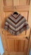 Stay cozy and stylish with this beautifully patterned brown and cream sweater poncho. Perfect for layering in cooler weather.