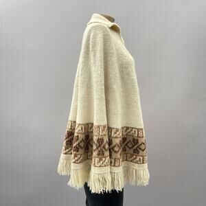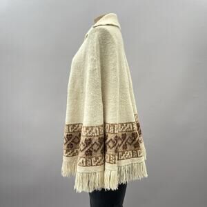 Fotrama Poncho Sweater Women OS XL 100% Alpaca Wool Knit Bolivia Fringe READ