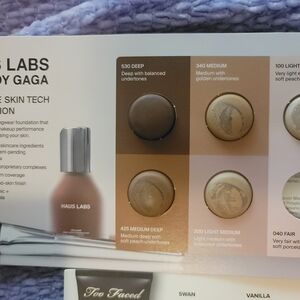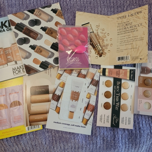 Explore a range of foundation samples from Haus Labs, MUFE, Bobbi Brown, Estee Lauder, Tower 28, Rare Beauty, tarte, and Born This Way. Includes a tiny Beauty Blender. Only one sample was used- the 040 Haus Labs shade.