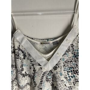 Foundrae White Blue Snake Print Silk V-Neck Layered Tank Top Size 0