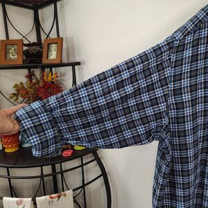 The Foundry Supply Co. 100% Cotton Blue Plaid Flannel 3XLT Long Sleeve Button Down Men's Big and Tall Casual Shirt with button-down collar. Measurements - 32" armpit to armpit, 64" chest, 35" shoulder to hem. Compare to $60 new!