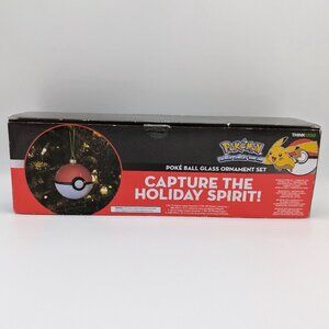 Four 4 Pokemon Poke Ball Christmas Glass Ornament Set Think Geek 2017