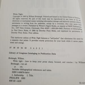 Write Tight by William Brohaugh Published by Writers Digest Books Date 1993 Hardcover 180 Pages. How to write clear and concise prose.