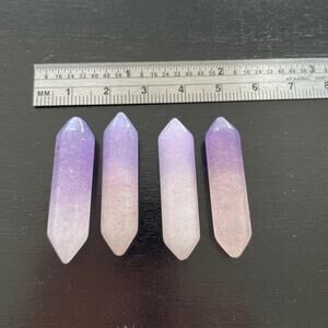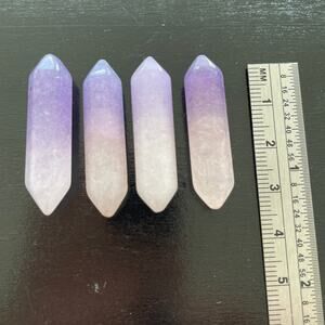 Four Dyed Rose Quartz Double Points set. Beautiful pink and purple colors like petals of a rose. You will receive these beautiful points in this picture. Great for jewelry making or manifestation grids. Each point is approximately 1" long.