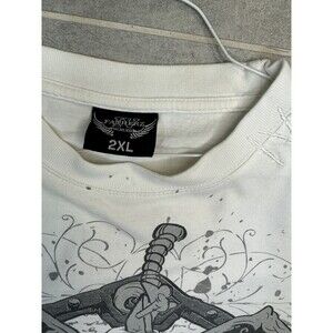 Four Fatherz Winged Skull And Dagger Y2K Hip Hop White T-Shirt - XXL