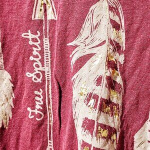 Four Girlz Womens Boho Crop Top Tee Shirt Feather & Arrow Print Size S ~SS46.3
