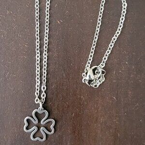 Four Leaf CLOVER Stainless Steel Charm Chain Necklace 24" IRISH Good Luck