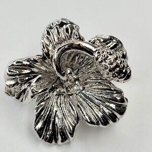 Four Mini Flower Brooch Pins Rhodium Plated Hibiscus Flower Pins - Set of 4 Pins