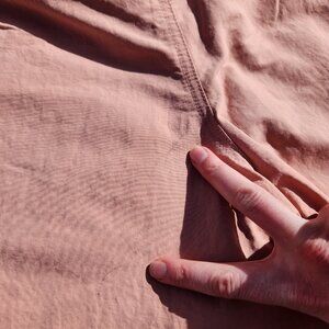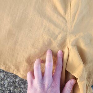 Four used Patagonia baggies (marketed as 5" inseam but actually 4" inseam). Some staining on the back of the pink pair and orange pair (shown in second-to-last and last photo).
