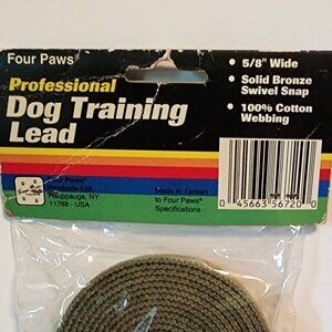 Four Paws cotton web dog training lead, 5/8" x 20 ft, olive green, NEW