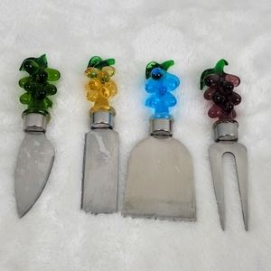 Four Piece Cheese Knives Set for Charcuterie Board Utensils Glass Grapes