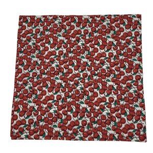 Set of Four Reversible Star Napkins Red, Green, Brown and Blue Patchwork Cotton, Cherry's White Green and Red On Other Side. 1980s Fabric