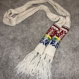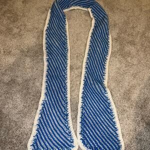 One knit scarf (boutique hand made, white and blue), three from Old Navy. Two extra long knit scarves. The black is fleece. Good condition. Blue and white scarf never used.