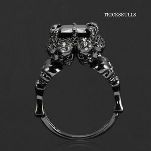 Four Skulls Black Anodized Sapphire Modern Gothic Punk Ring Size 7 8 9 10 New!