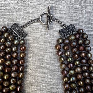 Beautiful Pearl Necklace. Hand Knotted. Vintage. Sterling Toggle clasp closure. Shortest length is 16" and drops longer with the addition of the other strands. Don't know much about it other than it is lovely and well made.