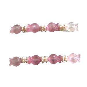 One Pair Varied Pink Tones Floral Tulip Barrettes