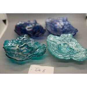 Four Vietri Ostrica Art Glass Oyster Shell Teal Blue Textured Trinket Dish 6.5”