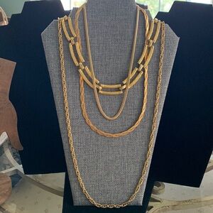 Four Vintage Gold Tone Necklaces of varying lengths 17” 17” 20” 31”