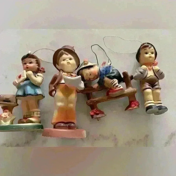 Four Vintage Hummel Style plastic Ornaments made in Hong Kong Good Condition