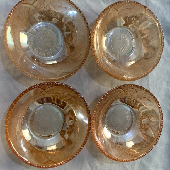 Four Vintage Iridescent Depression Glass Iris and Herringbone 4" Berry Bowls