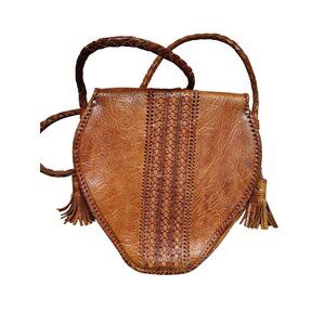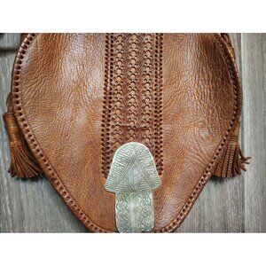 Four Winds Leather Crossbody Purse Hamsa Embellishment Braided Strap Boho Hippie