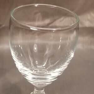 Four and 3/4 inch tall by one and a half inch wide wine glass short stem.