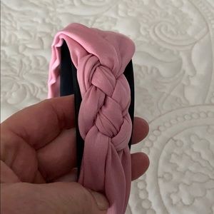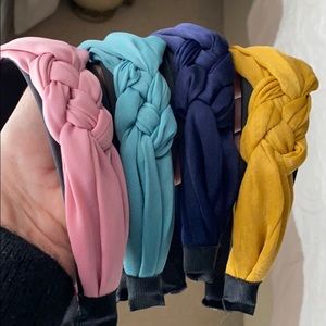 Silk 2” wide, side knot, headbands (set of four). Pink, navy, mustard yellow and lighter blue. Never worn. Smoke free pet free home