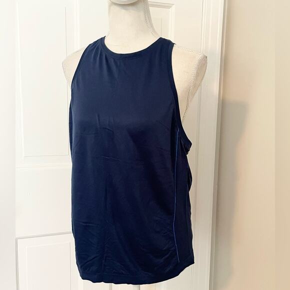 Navy blue sleeveless Racerback performance tank top. Size XL. Chest 18.5” Length 25.5” Excellent preowned condition.