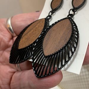 Four pair of earrings. Two are solid wood & walnut color have black metal trim detail. Jewelry display is not included. Smoke free and pet free home and these are all new… Never worn