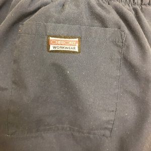 Four pairs of scrubs. Have drawstring at waist. These are petite in length.