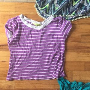 Two size large (top two) .. Purple stripes (medium), & pattern cute bottom up with all buttons size small