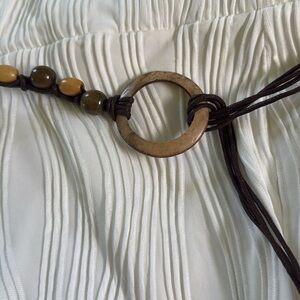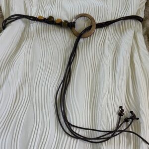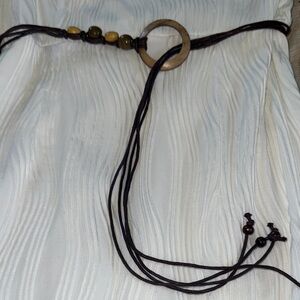 Elevate your style with this western boho chic rope belt, featuring a dark brown and wooden accents. Perfect for any occasion!