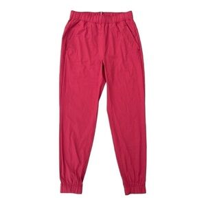 Four laps jogger pants featuring an elasticized waist and hems. Back Zippered pocket and side slant pockets