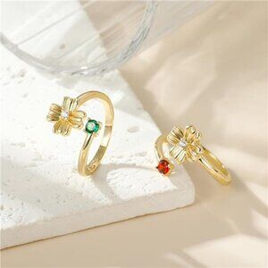 ✨ Four-Leaf Clover Birthstone Ring | Adjustable Gold Emerald Ring