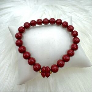 Four-Leaf Clover Cinnabar Beaded Bracelet