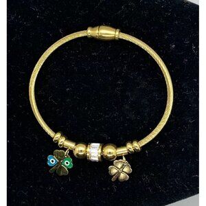 Four-Leaf Clover Magnet Clasp Charm Bangle Bracelet with Evil Eye