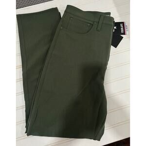 The Fourlaps Athletic Evolve Regular Length Pants in Thyme Green are designed for women in size 8. Made of a polyester blend material, these dress pants feature a snap closure and stretchy fabric for comfort. Ideal for travel, casual outings, and workwear, these pants have an athletic fit and are perfect for active women.