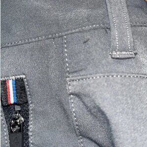 5 pocket (jean-style) golf/commuting pants. Actual measurements: waist 35", inseam 31.5". Picture of rolled cuffs shows reflective fabric.