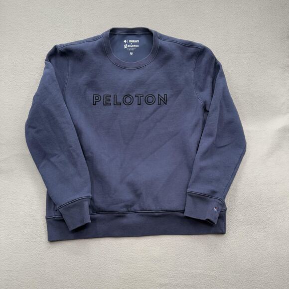 Fourlaps x Peloton Sweatshirt Mens XL Navy Blue Crewneck Zipper Pockets Athletic