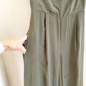 Fourteen & 9th Jumpsuit Olive Green Open Tie Zip Back Wide Leg Large Boho